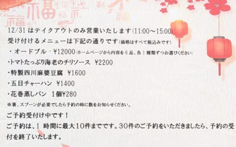 ブログ Posted on 2025年11月1日 by ck-taka 1日の日替わりメニューは 「長州鶏の甘酢炒め」or「鹿野豚と大根、春雨のピリ辛煮込み」です ランチセットはお取り置き可能です。お問い合わせください ➖️➖️➖️➖️➖️➖️ 年末に向けてご予約いただいております 12/3...